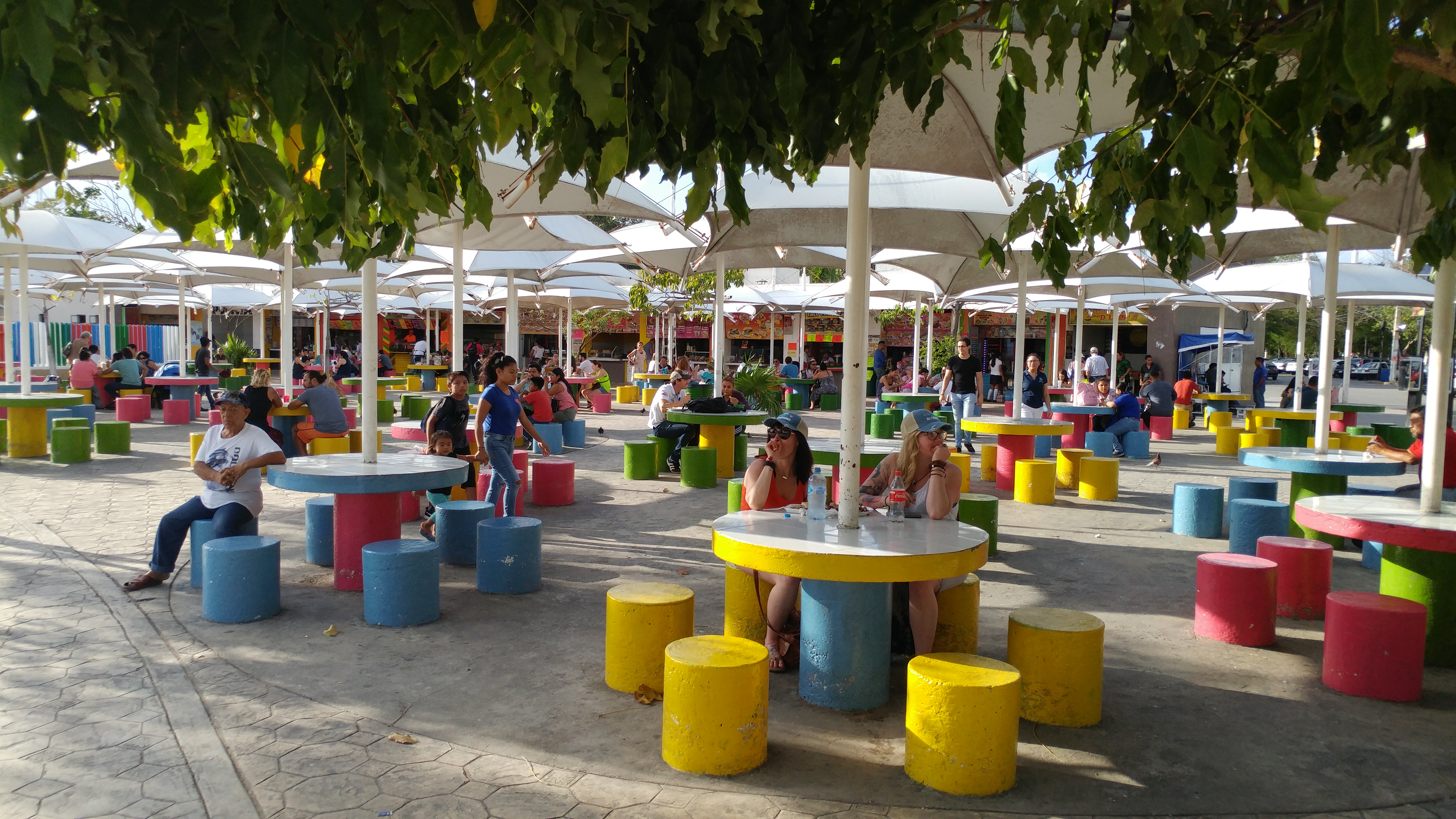 بعد از خوردن غذا به سمت خونه راه افتادیم که حدود ده دقیقه پیاده راه بود. توی راه و در نزدیکی خونه یک پارک بود به نام Palapas Park. اینجا عصرها محل تجمع مردم محلیه. کلی صندلی و چتر داره که دور تا دورش دکه های غذافروشیه.
