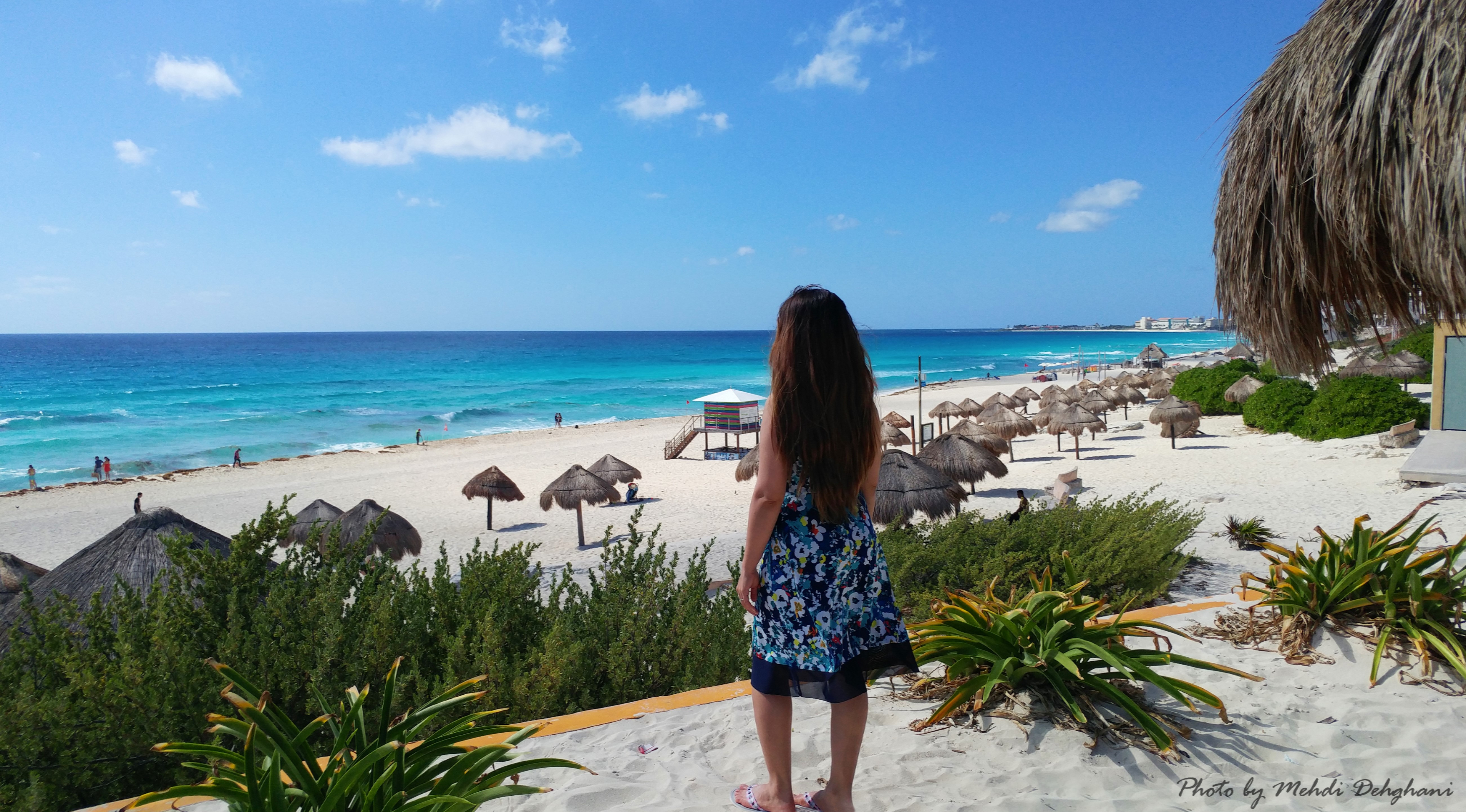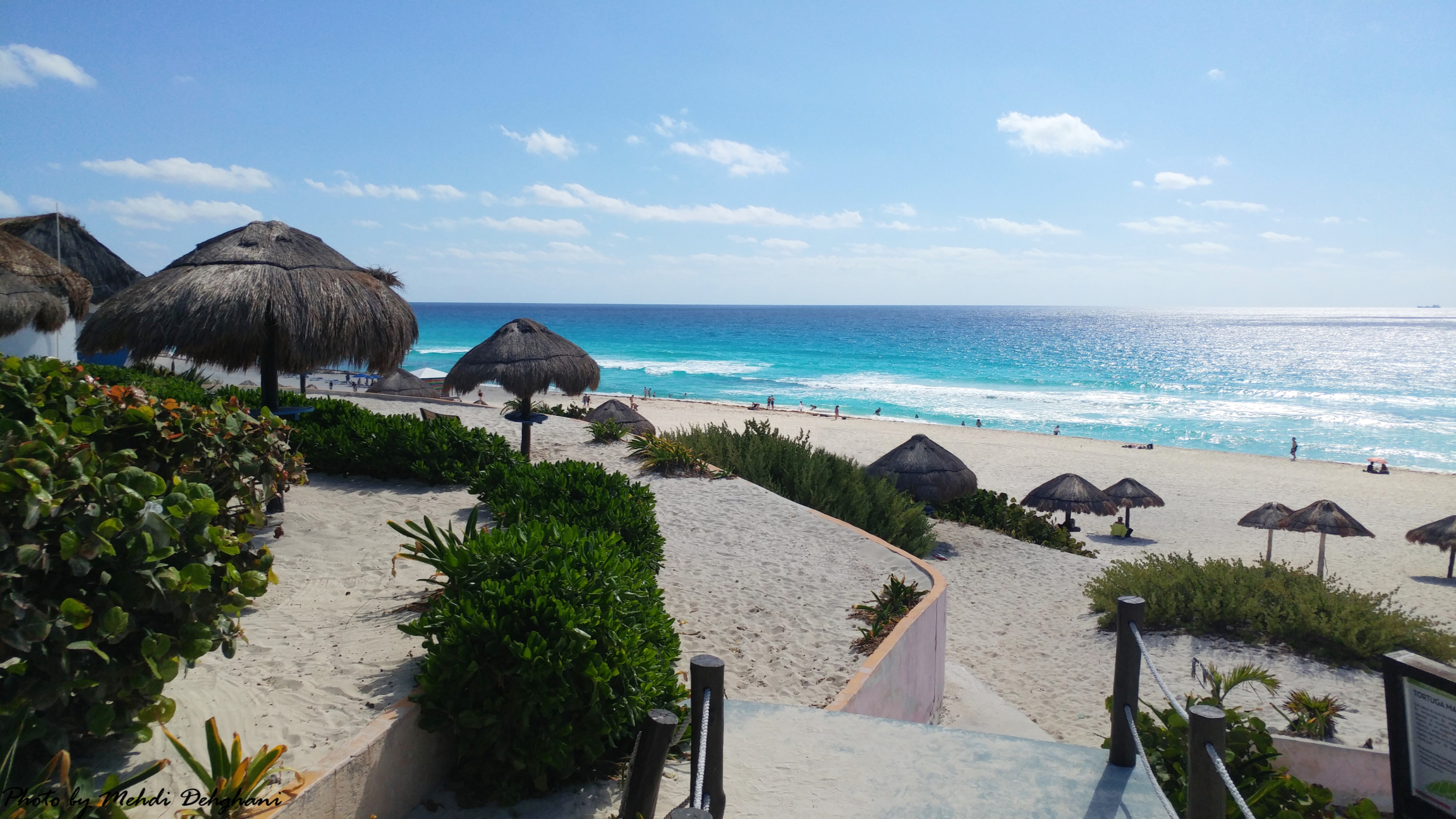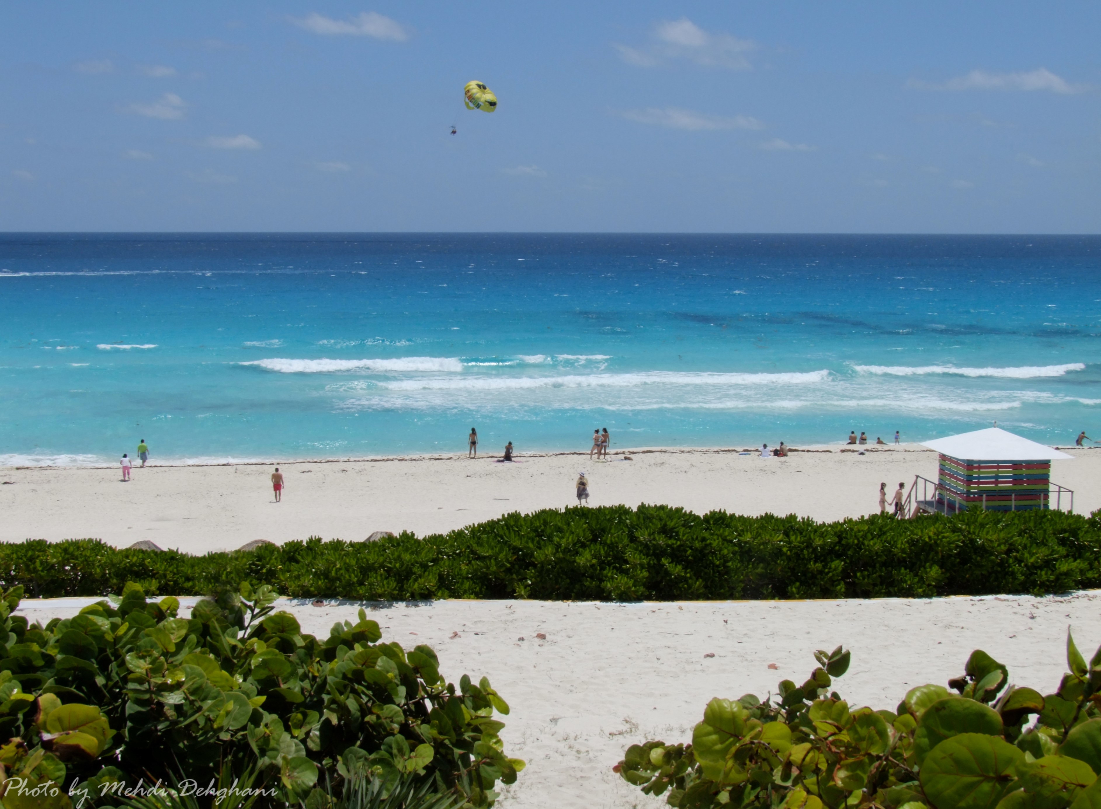 پرواز از مکزیکو سیتی به کنکون کمی بیش از دو ساعت طول کشید. هنگام خروج از فرودگاه آدمهای مختلفی بهتون نزدیک میشن که هر کدوم سعی دارند خدماتی مثل تاکسی، تور، هتل و ... رو بهتون بفروشن. کلا توی مکزیک فروش به سبک آدامس فروشهای ایران و به روش "کَنه شدن" خیلی رواج داره. بهتون اطمینان میدم که تمام قیمتهای پیشنهادی این افراد خیلی بیشتر از حالت عادیه. سرتون رو بندازید پایین و باهاشون چشم تو چشم نشید و راهتون رو بگیرید و از بینشون بیاید بیرون. اگر میخواید خیلی مودب باشید چند لحظه یکبار و در حین حرکت بگید نُ گِراسیاس (No Gracias). این به اسپانیولی میشه "نه، ممنونم". اگر فقط همین یک کلمه رو هم از اسپانیولی یاد بگیرید برای کل سفرتون کافیه. هر وقت دیدید یکی بهتون چیزی گفت همینو بگید و رد بشید. چون 99 درصد طرف میخواد یک چیزی بهتون بندازه 😊